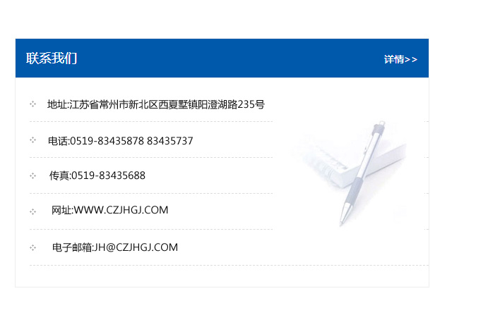 傳真:0519-83435688    郵編:213135    網址:WWW.czjhgj_com.zbrunping.com    電子郵箱:JH@czjhgj_com.zbrunping.com